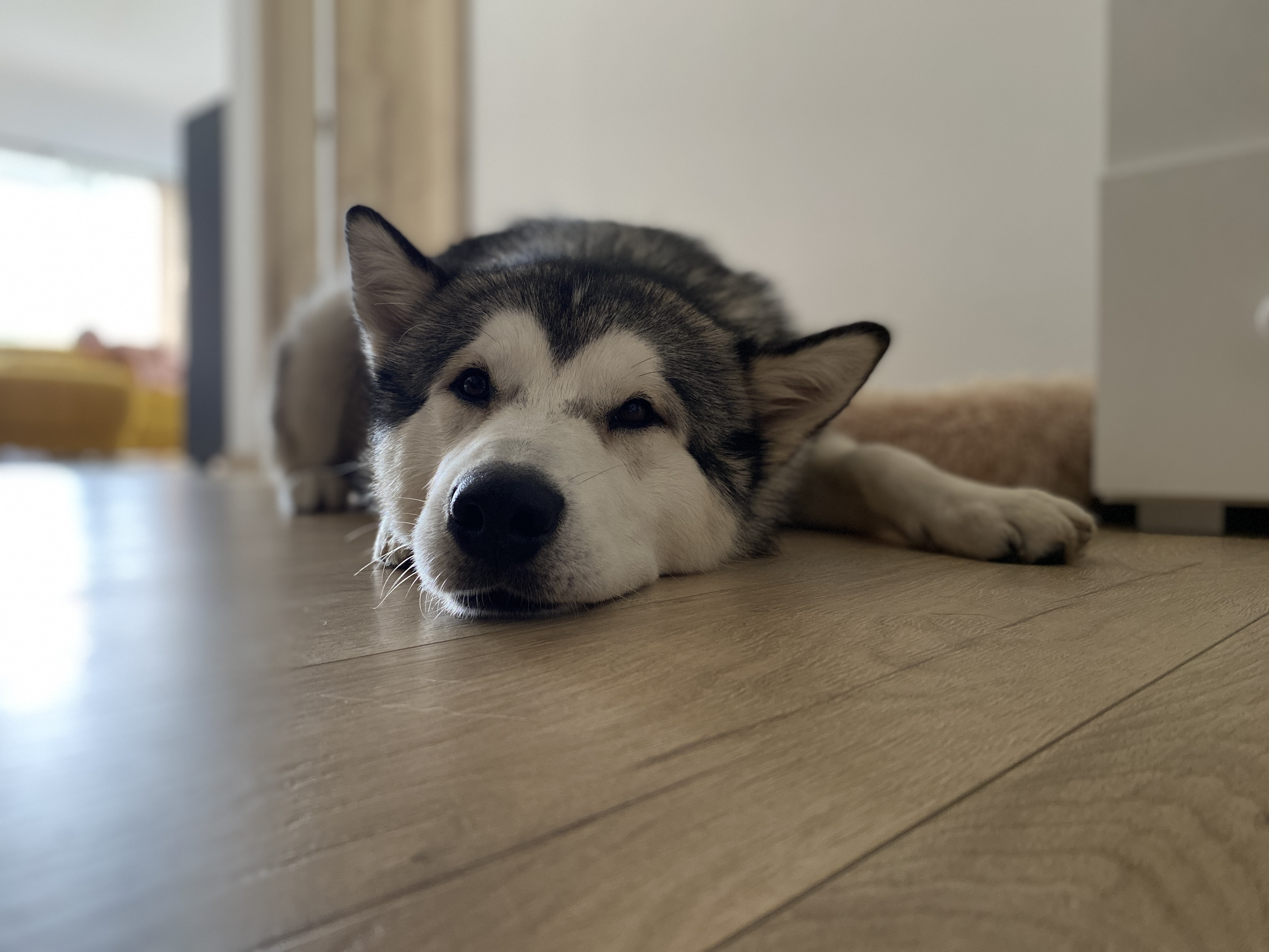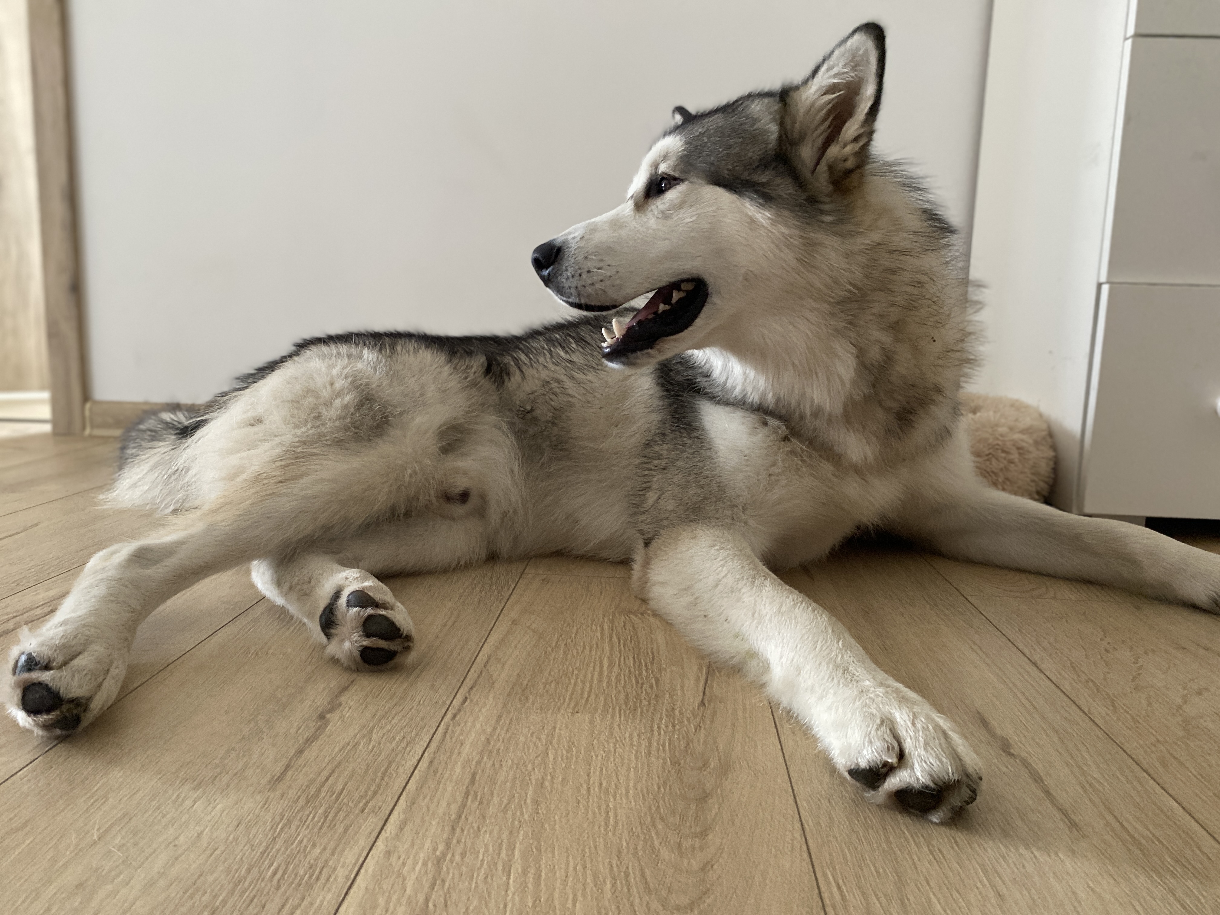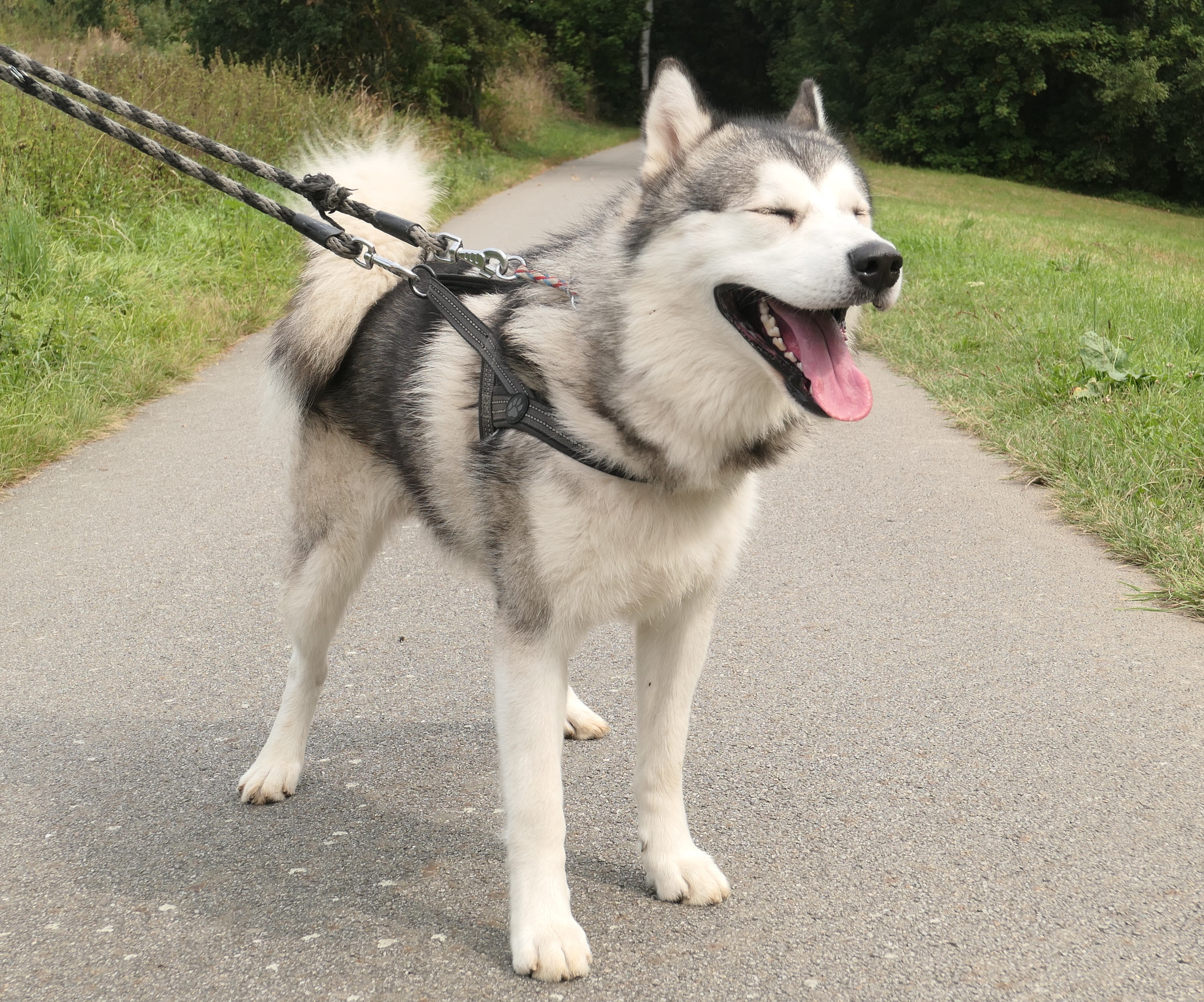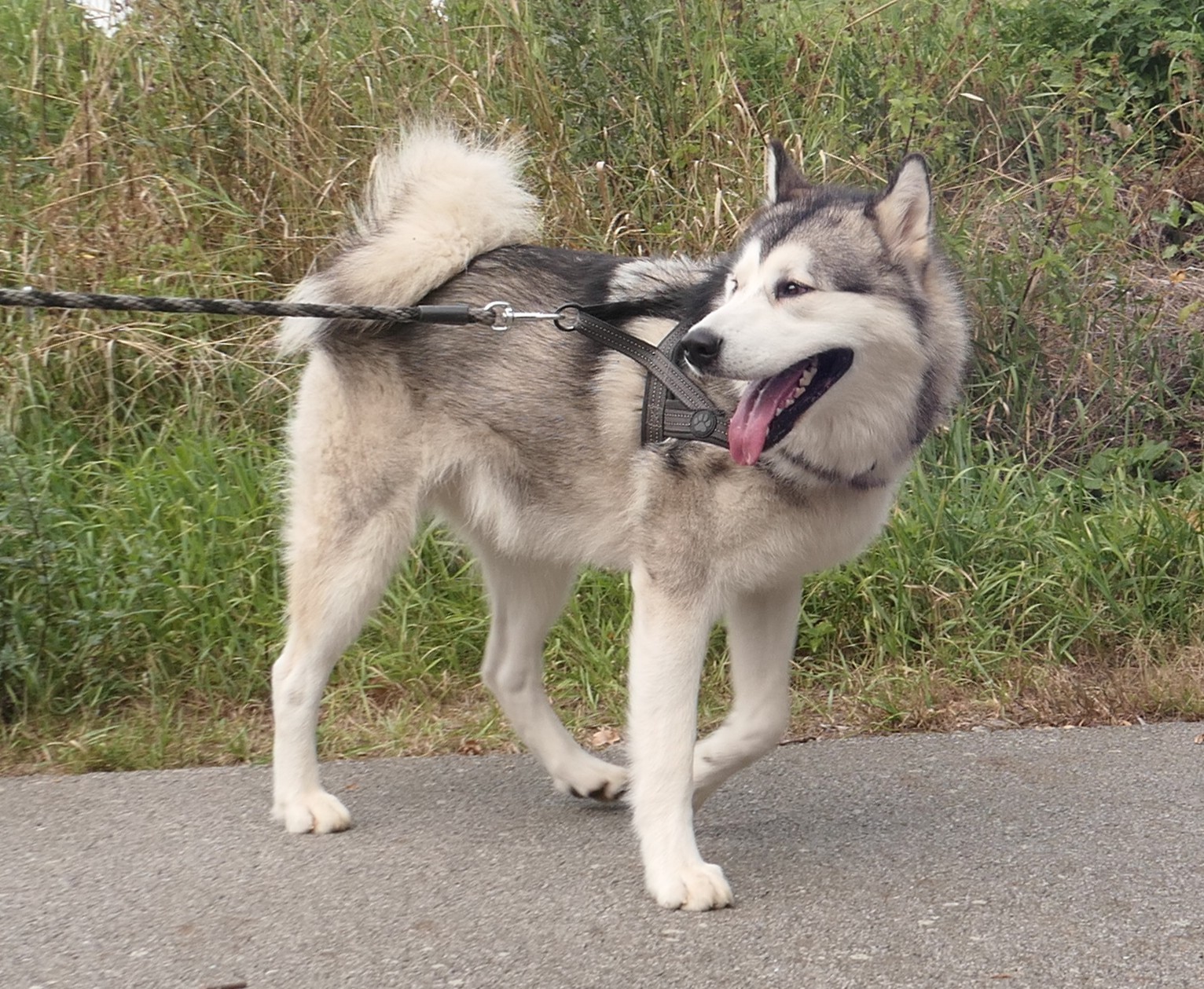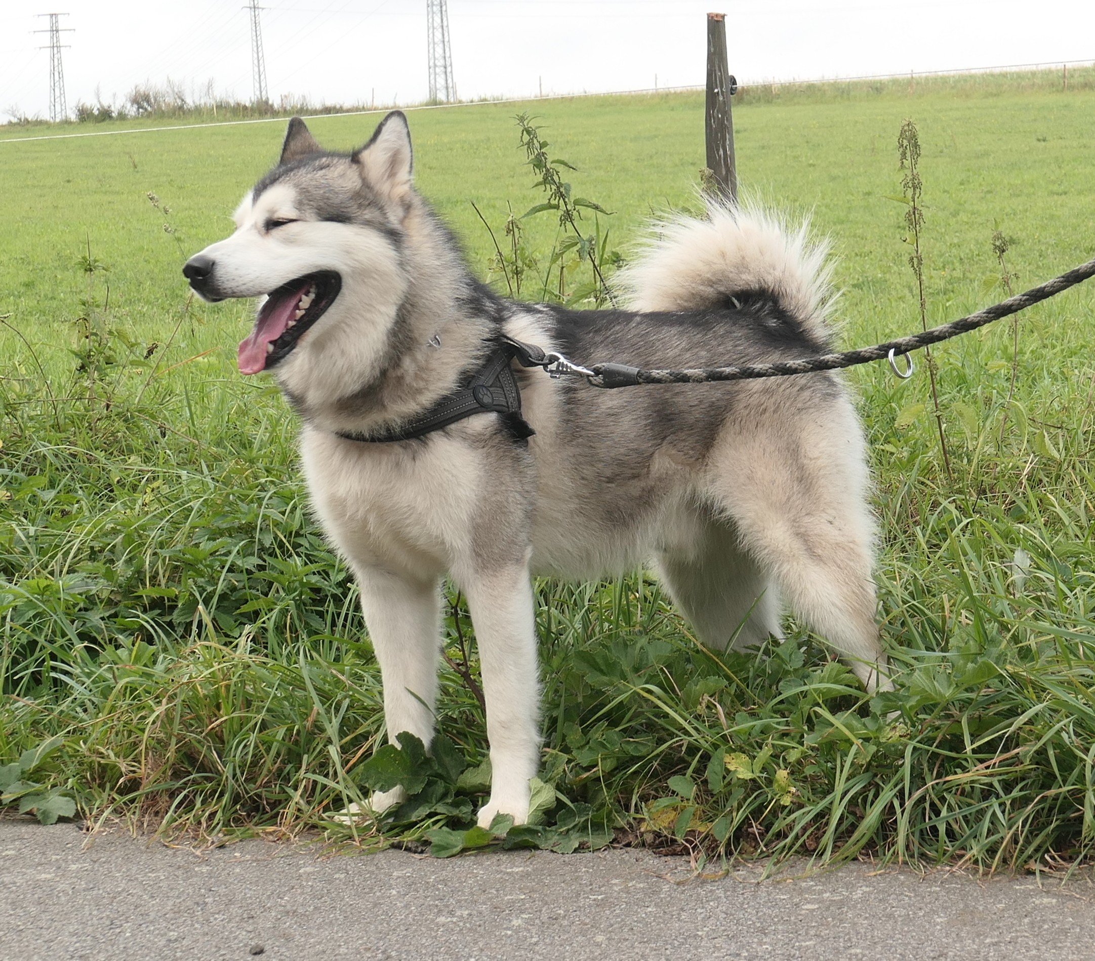 Maxík je roční kříženec aljašského malamuta, váží asi 30 kg. Maxík je velmi přátelský a vítací, má rád lidi a je zvyklý na děti včetně těch maličkých. Mohou mu brát hračky, sahat do misky, řádit s ním….bude šťastný. Maxík je aktivní pes vhodný také do zápřahu. Fenky má moc rád a pejsky si vybírá, ale není v zásadě nepřátelský. Kočičky ignoruje, ale slepice by lovil, stejně tak by prohnal srnky a zajíce. Byl zvyklý s pánem pobývat v lese, kde pán pracoval a naučil ho přivolání na klakson. V bytě je naprosto čistotný, řekne si škrábnutím na dveře, že potřebuje jít ven. Bohužel o samotě vyje a z toho důvodu se jej majitelé musí vzdát.