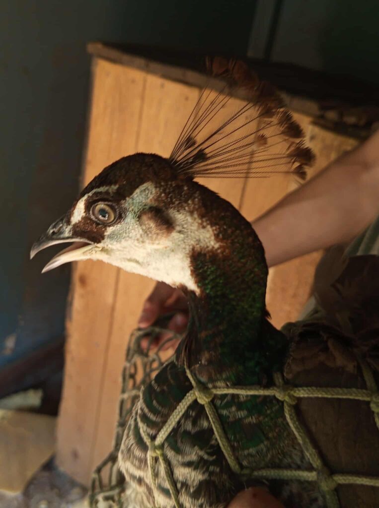 Dne 4. 7. 2025 byla odchycena tato pávice v Pelhřimově – Stavmat stavebniny.