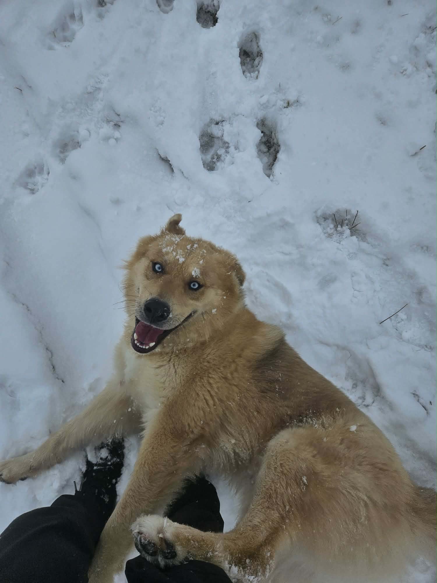 Teo je asi desetiměsíční kříženec možná pasteveckého a severského plemene, váží 35 kg. Teošek je neskutečně milý, vítací, hravý, dovádivý, plný radosti a pohybu. Je neskutečně učenlivý, během pár procházek se naučil spoustu povelů psí poslušnosti, je nadšený pro jakoukoli spolupráci a akci. Se psy nemá problém, stopy zvěře neřeší. Tea jsme odchytli v nedaleké obci, první dny smutnil, vůbec nic neuměl, ale během sotva pár dnů se z něj tvoří hrdý, šťastný a nadaný pes.