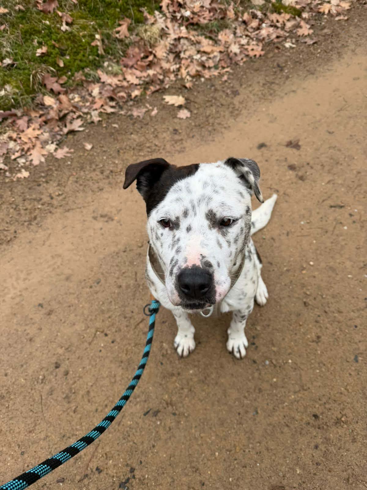 Adar je 5letý kastrovaný kříženec staforda s nějakým puntíkatým psem. Váží 26 kg. Adárek je milý, veselý a mazlivý pes. Přestože jeho původní majitel ho brutálně mlátil a kopal, nezanevřel na lidi a je dokonce stále vítací typ. Má rád lidi i děti. Adar je aktivní pes, ale není hyperaktivní jako většina bullů. Při setkání s vyrovnanými pejsky se chová hezky, pokud ovšem jiný pes štěká nebo ho provokuje, jde do konfliktu. Adárek zná základní povely a dobře chodí na delším vodítku.