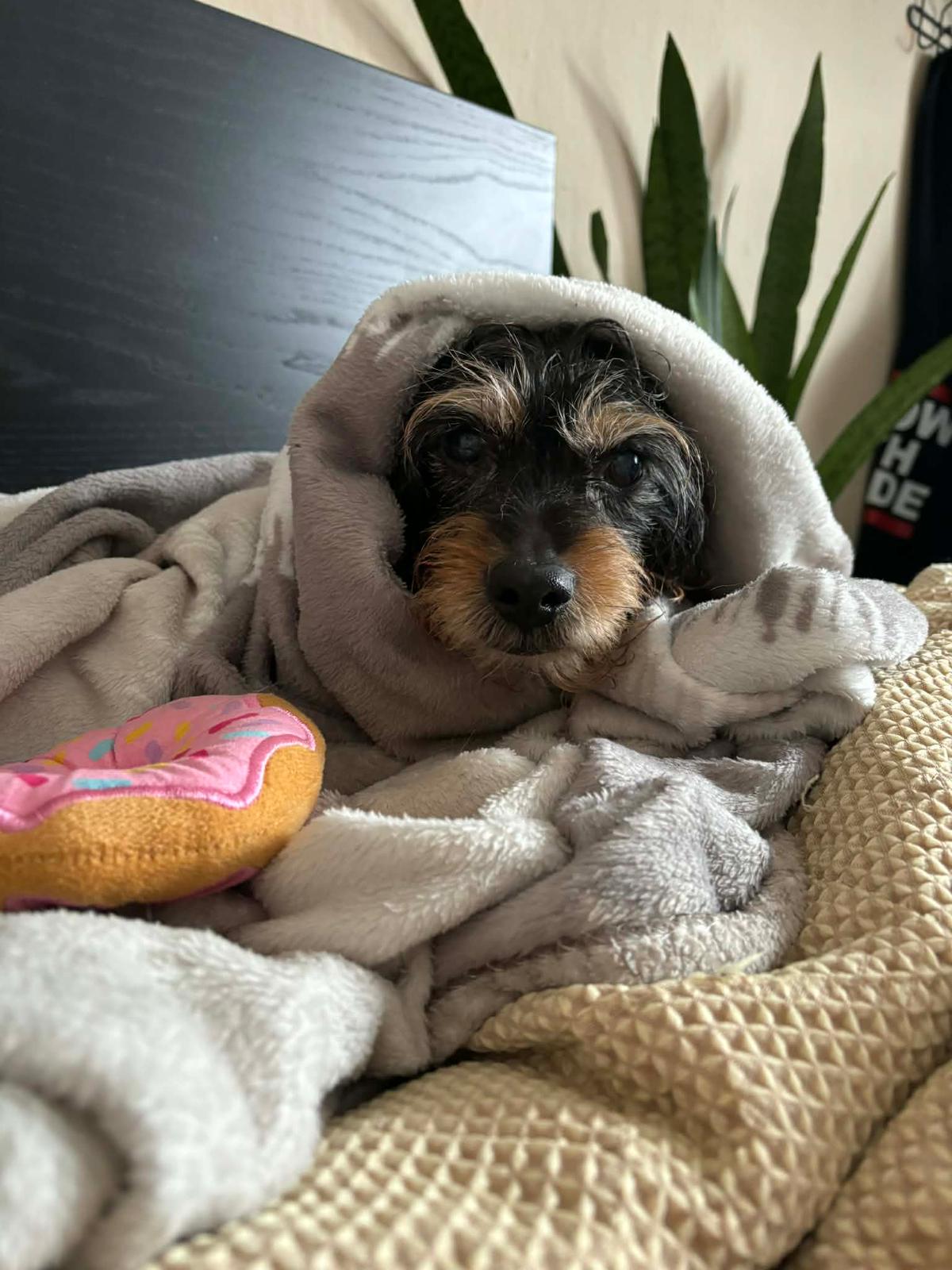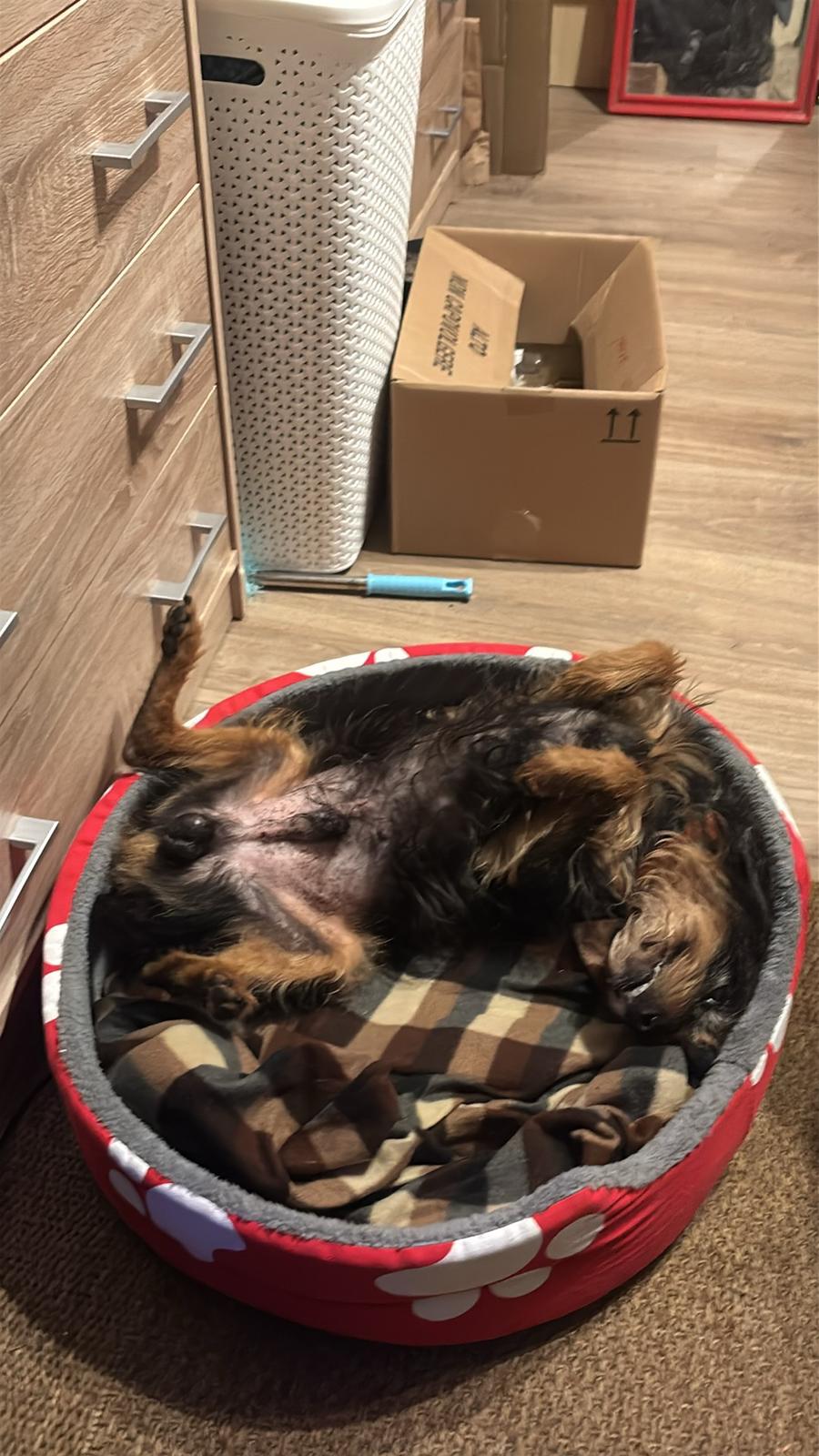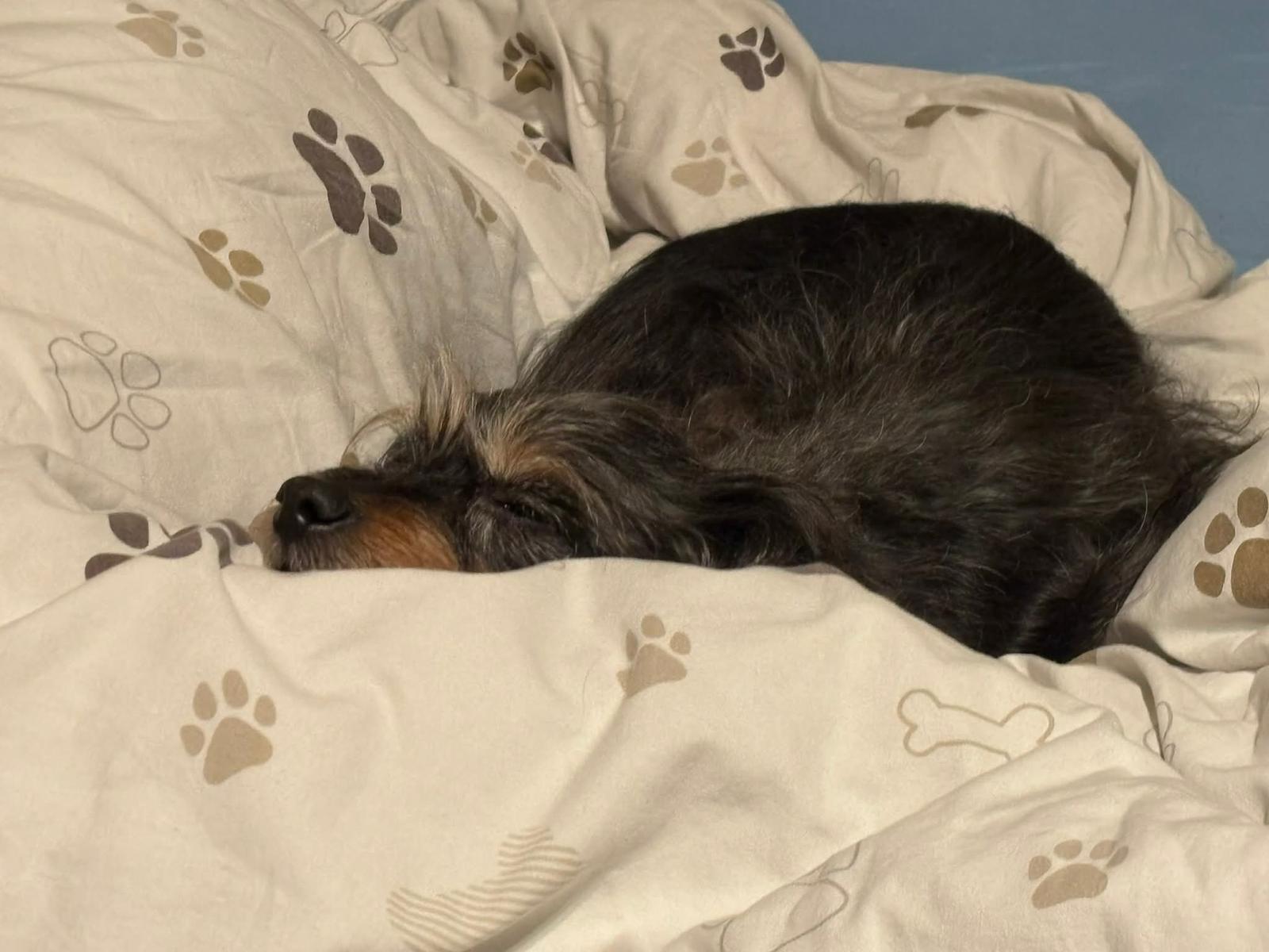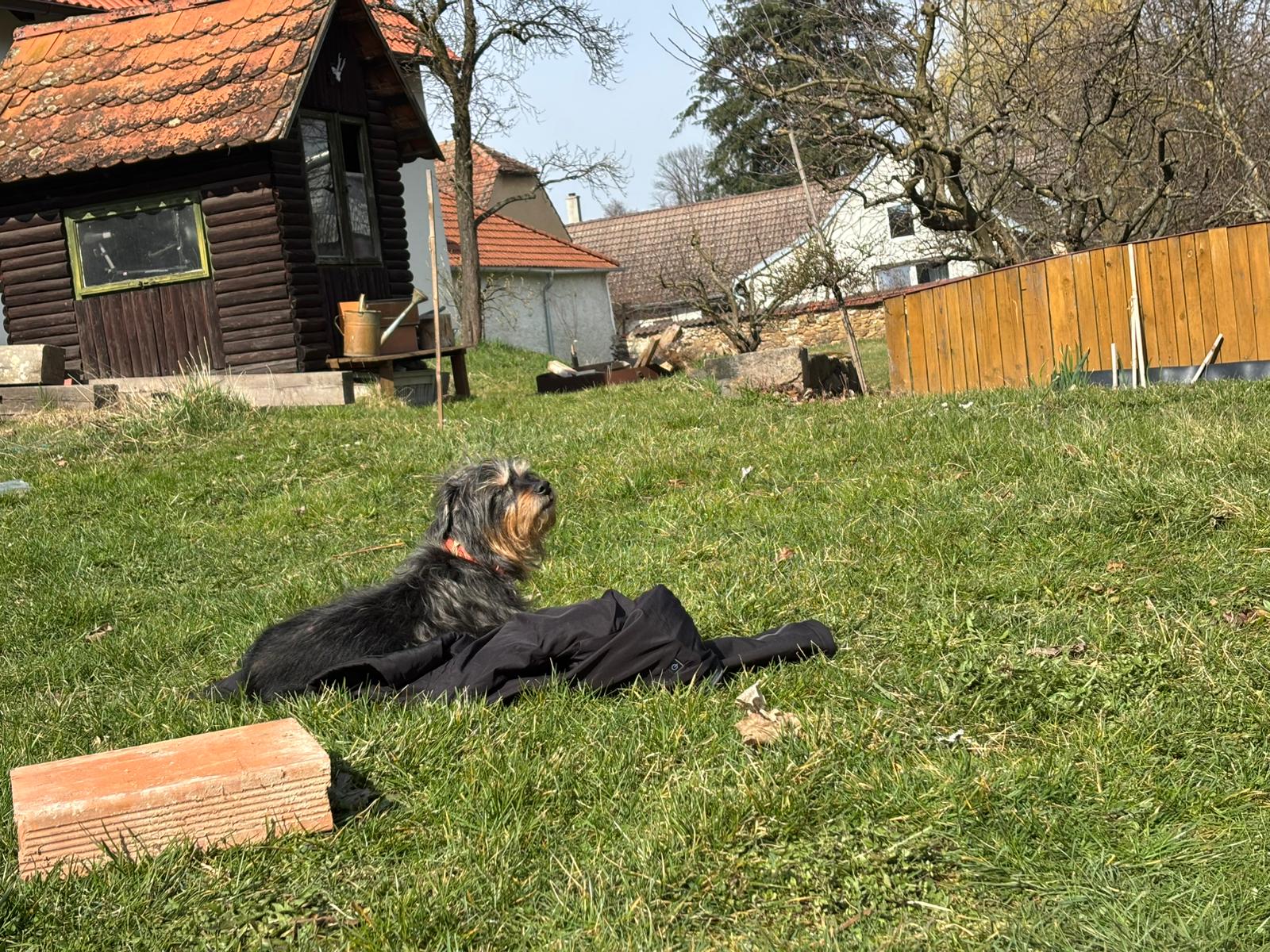 Křovíček dlouho nečekal a našel krásný domov u mladého páru v domečku nedaleko Jindřichova Hradce. Spinká v posteli a má se jako v bavlnce ![]()