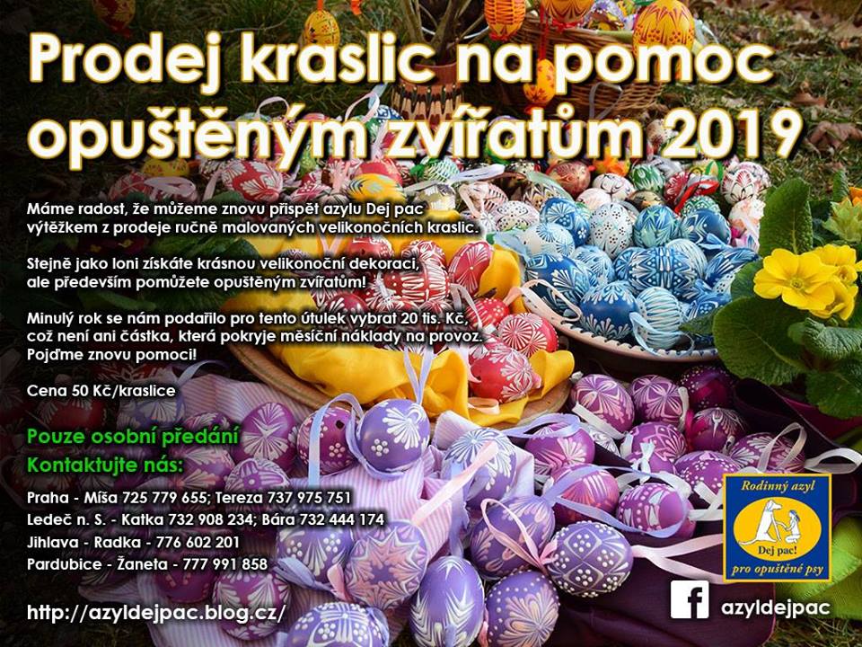 Letos opět probíhal prodej ručně malovaných velikonočních kraslic na pomoc opuštěným zvířatům z našeho azylu. Tato akce vydělala pro svěřence z našeho azylu krásných 60.000,- Kč a my z celého srdce děkujeme holkám, které kraslice malovaly a prodávaly – Kateřina Sýkorová, Žaneta Sýkorová, Michaela Calková, Tereza Vodehnalová, Barbora Lebedová a Radka Prokopová. Všem velké díky!