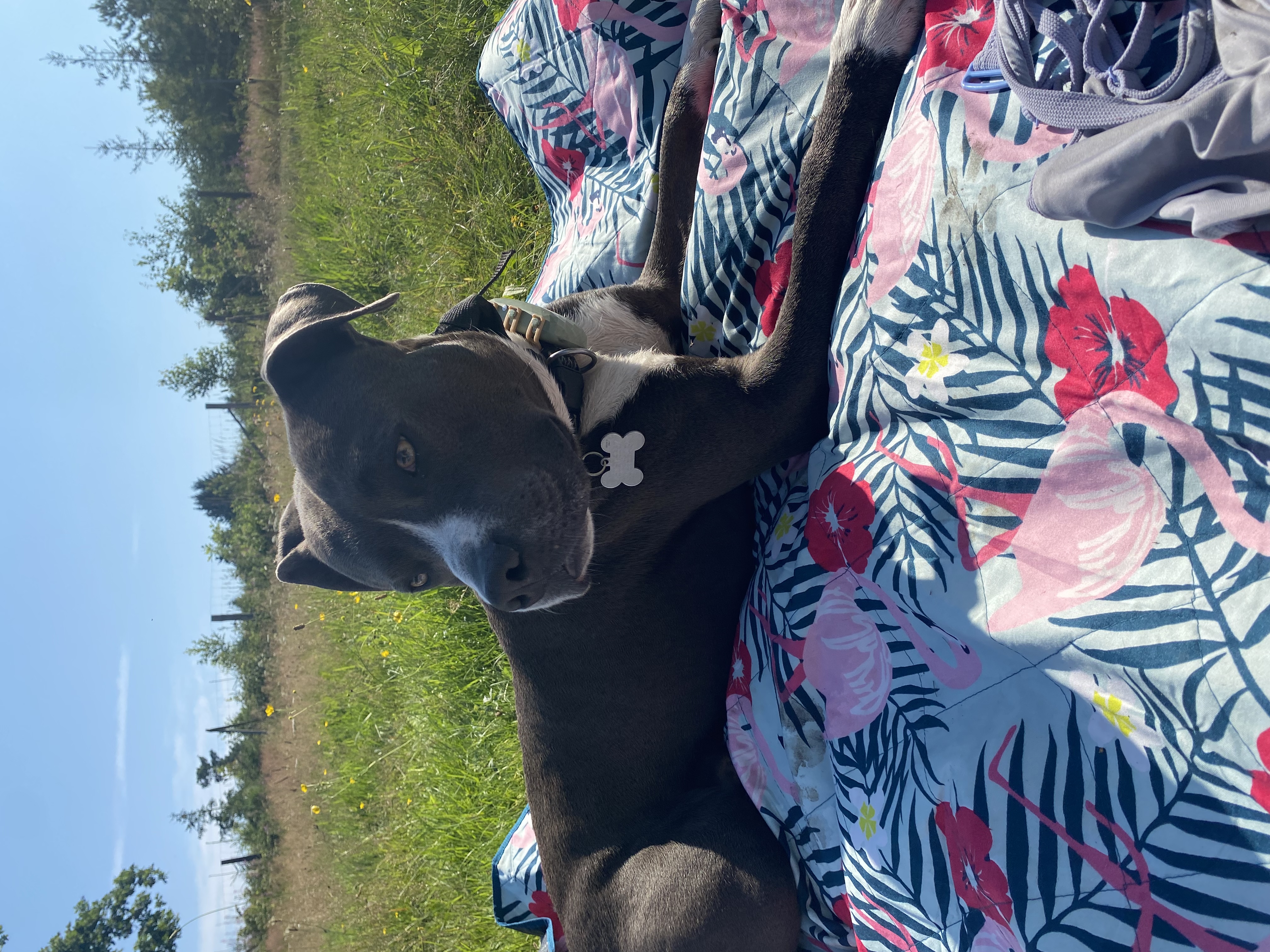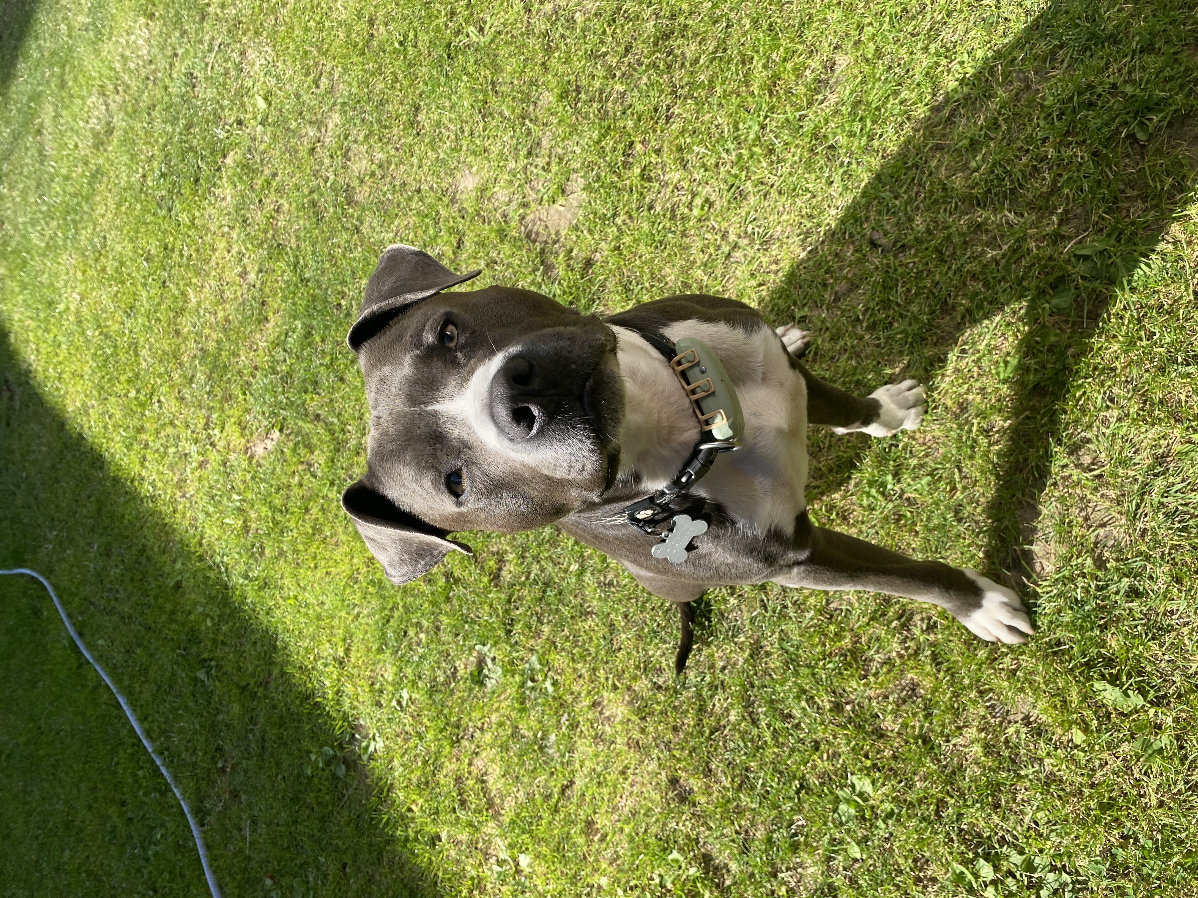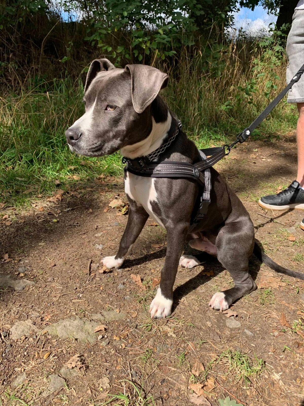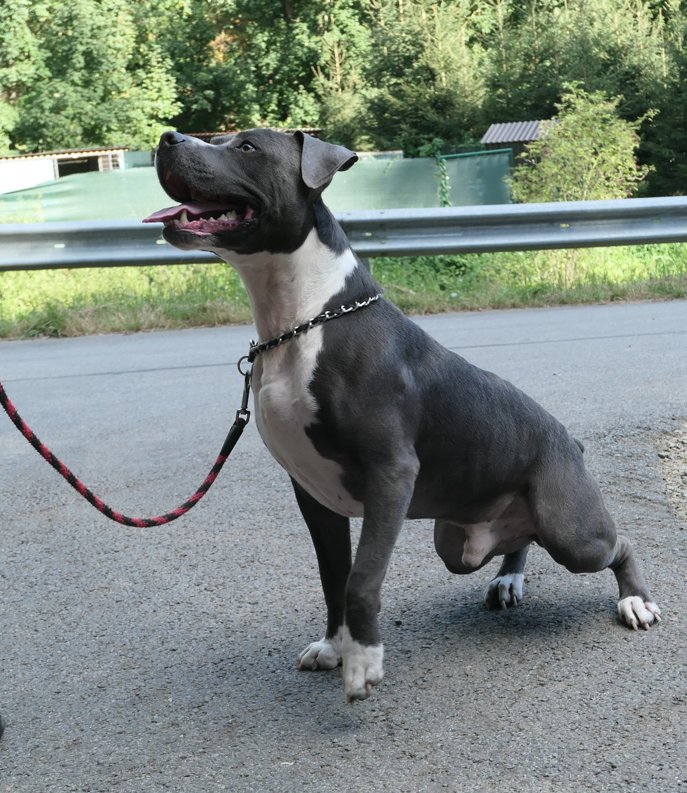 Danny nezvládne dlouhé túry, spíše rekreační procházky nebo blbnutí po zahradě. Po delší chůzi a nebo když zastaví, nožičku si odlehčuje.
