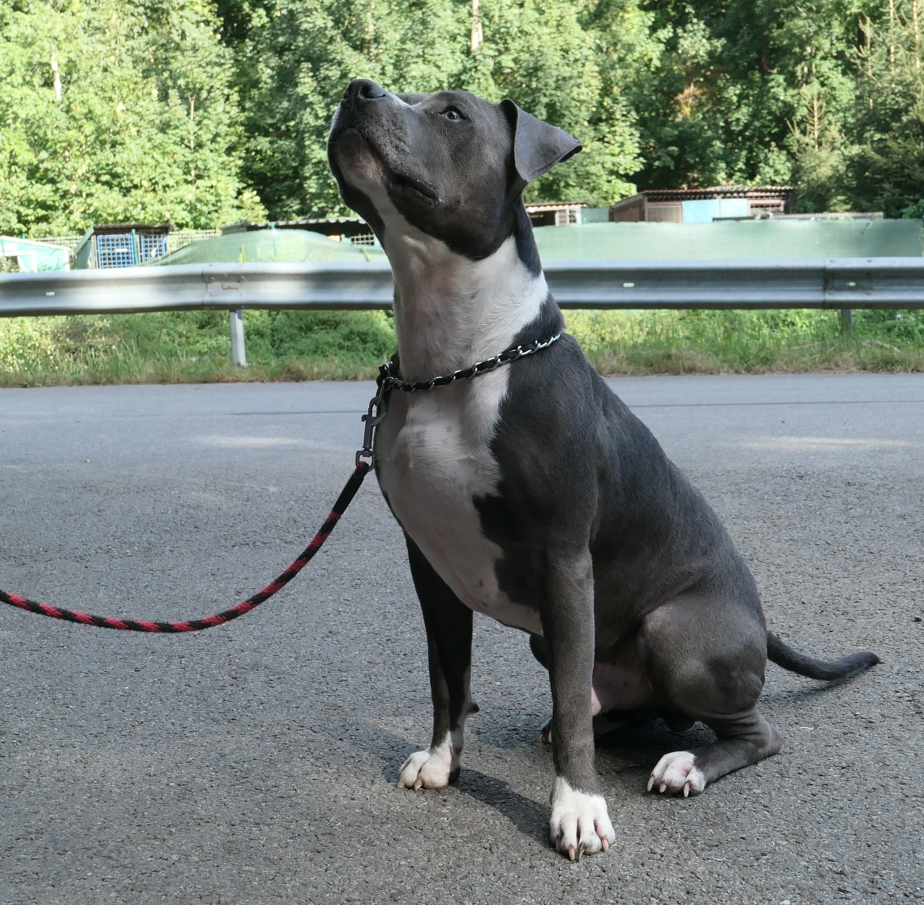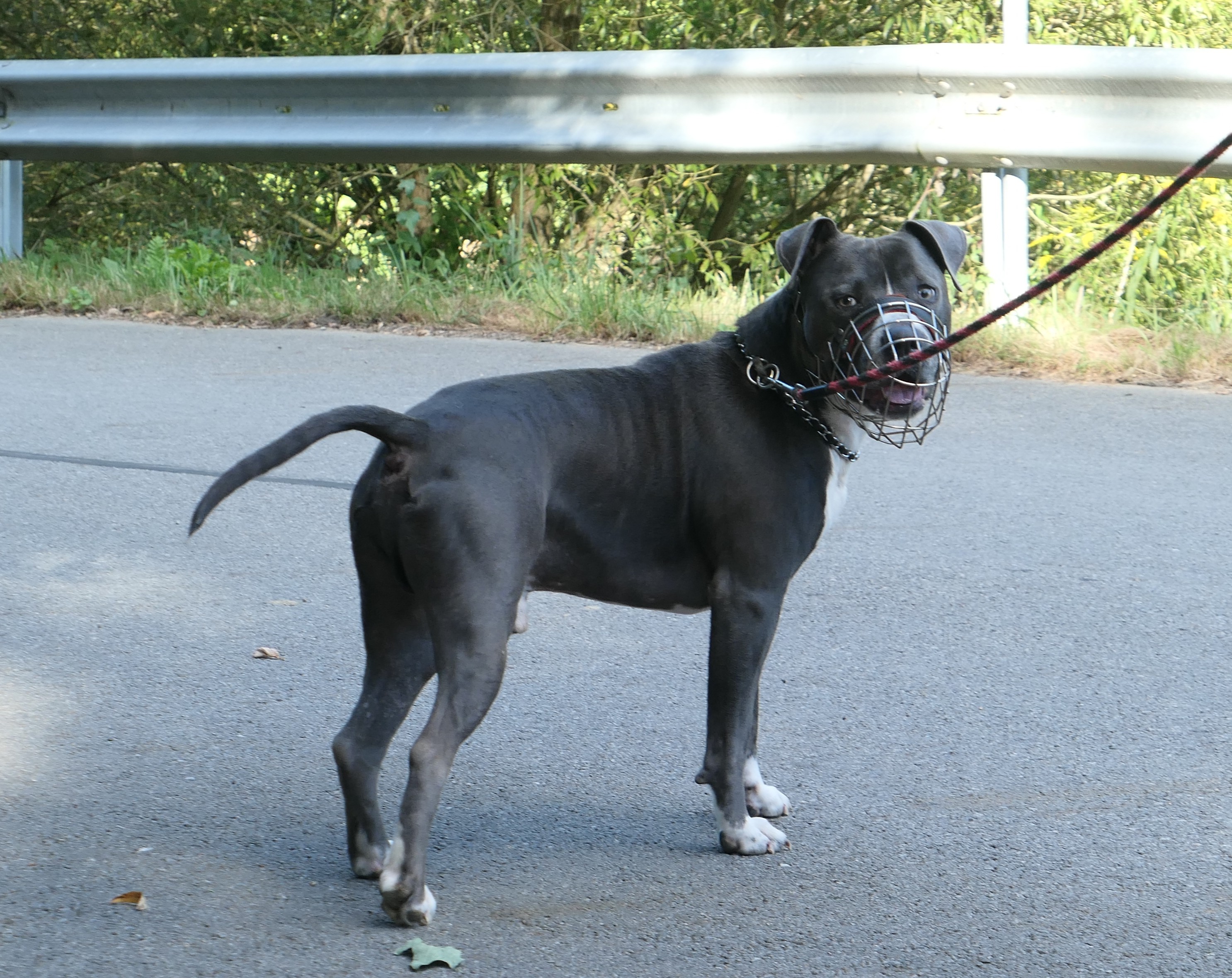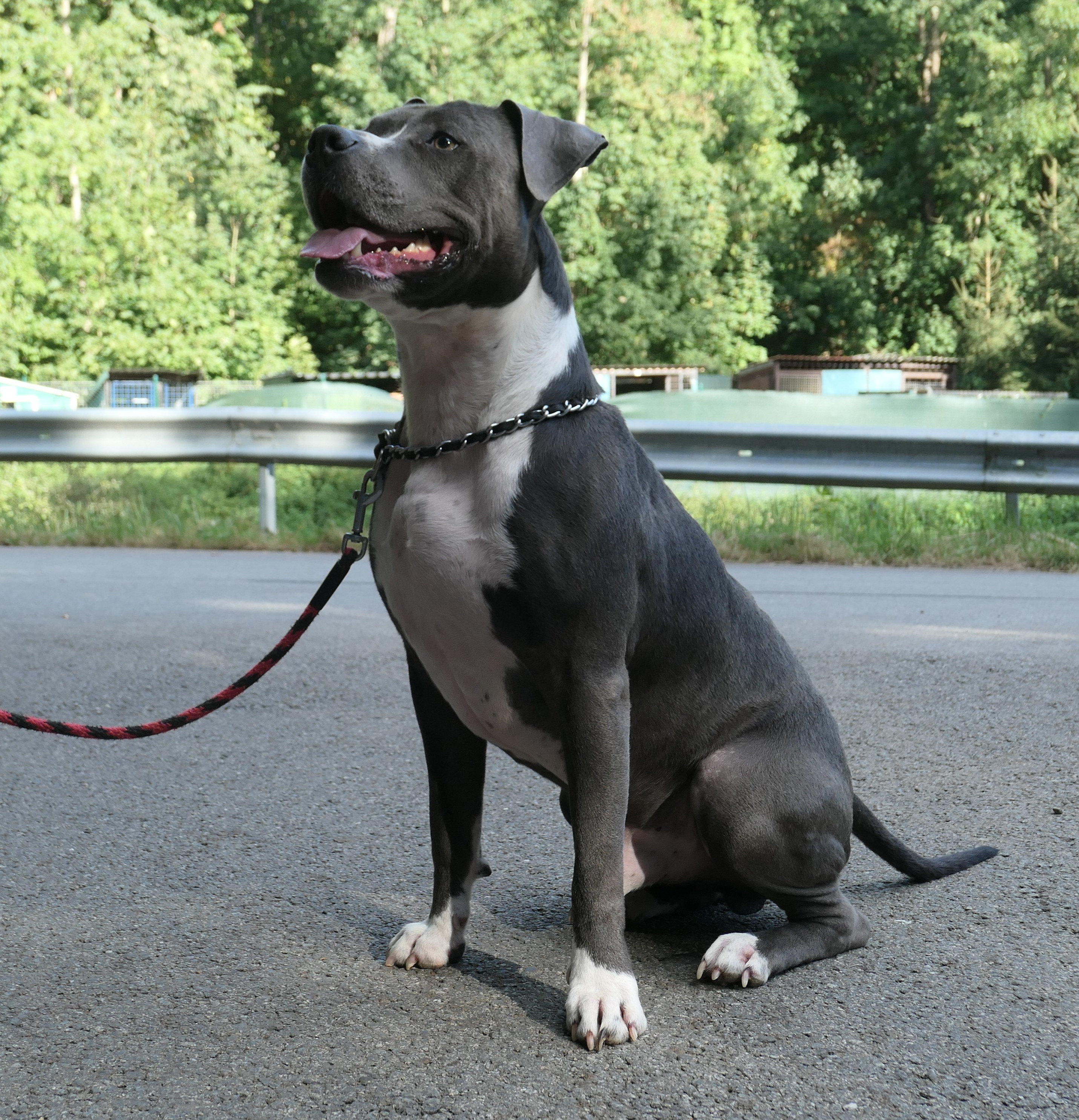 Když bylo Dannymu 7 měsíců, měl úraz – tříštivou spirální zlomeninu přední nohy. Nikdo neví, jak se to vlastně stalo…jeho drogově závislí majitelé ho přivázali na celý den za kiosek na pláži v Červené Řečici. Tam čekal, ve 30° C, se zlomenou nohou, na kratičkém vodítku, bez vody. Obsluha kiosku nás zavolala na odchyt a akorát jsme se tam potkali s majiteli, kterým jsme nabídli pomoc – umístění, veterinární ošetření, operaci. Ti to však odmítli a o dva dny později Dannyho přivázali v 5 ráno v Pelhřimově ke garážím. Případ jsme nahlásili policii.