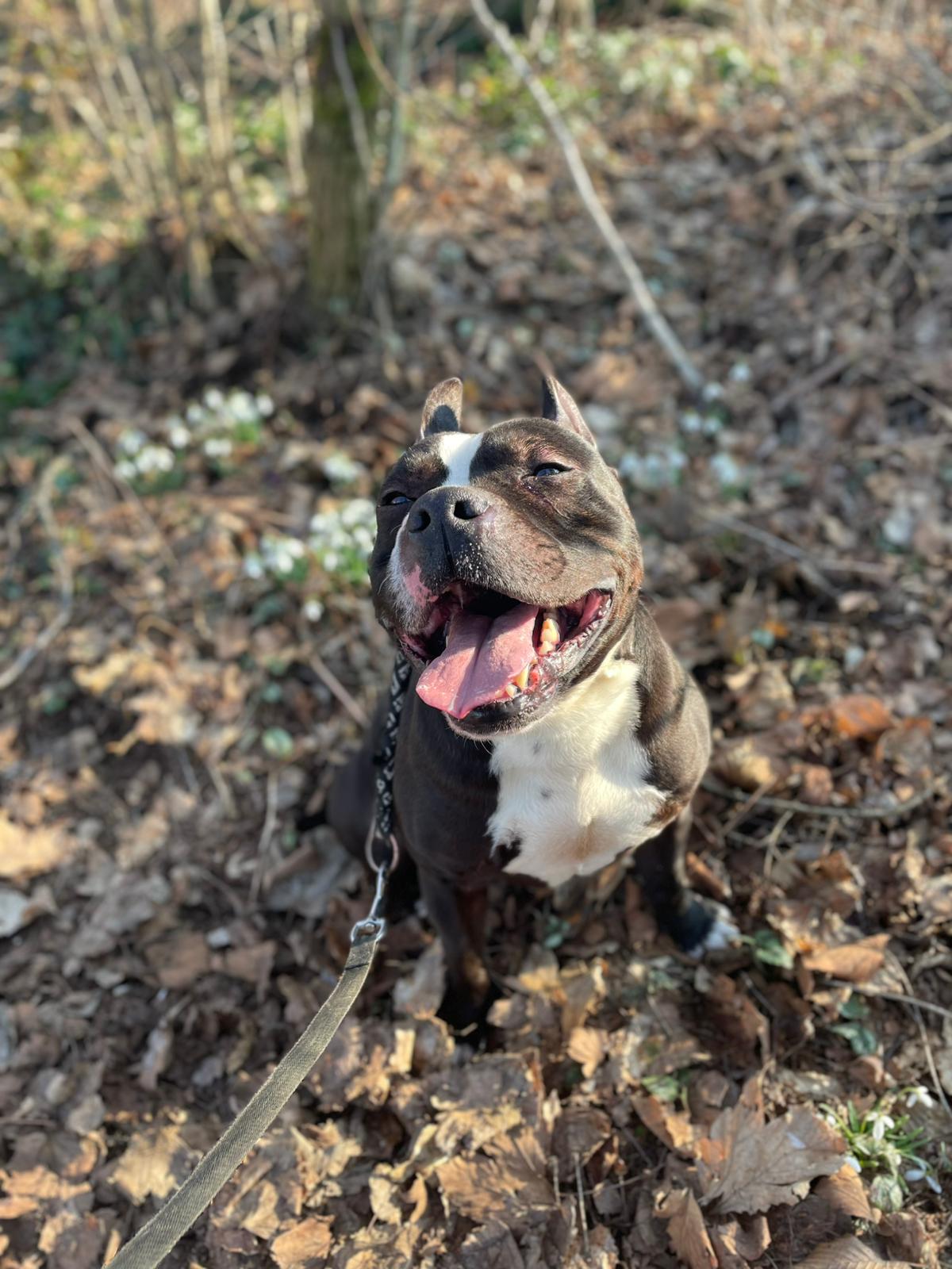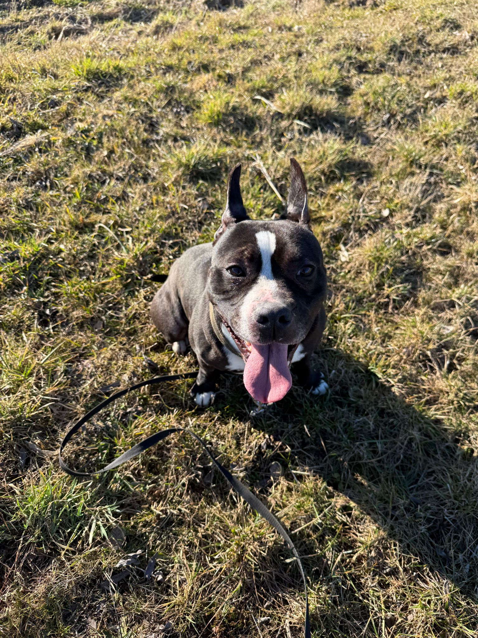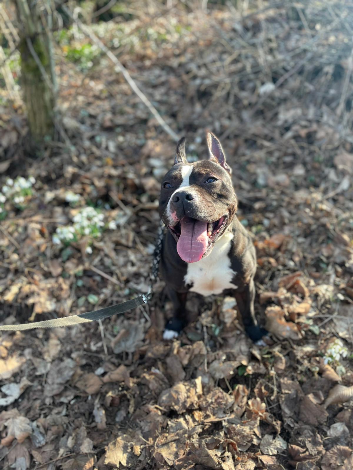 Jay je 6letý kříženec staforda nebo stafbulla. Váží 25 kg. Jay je nadupaný a milující psí kluk – hravý, akční, neúnavný… klidně bude celý den řádit venku. Na vodítku je trochu hrrr, ale v klidném prostředí bez stop zvěře může chodit i na volno. Je zvyklý doma a je velmi čistotný, ale zůstává nerad sám. Zpočátku je opatrný a je třeba mu dát čas na seznámení. Z toho důvodu se nehodí k úplně malým dětem, k větším bez problémů. Se psy se převážně snese dobře, ale trvalé soužití by vyžadovalo ostražitost a zkušenosti.