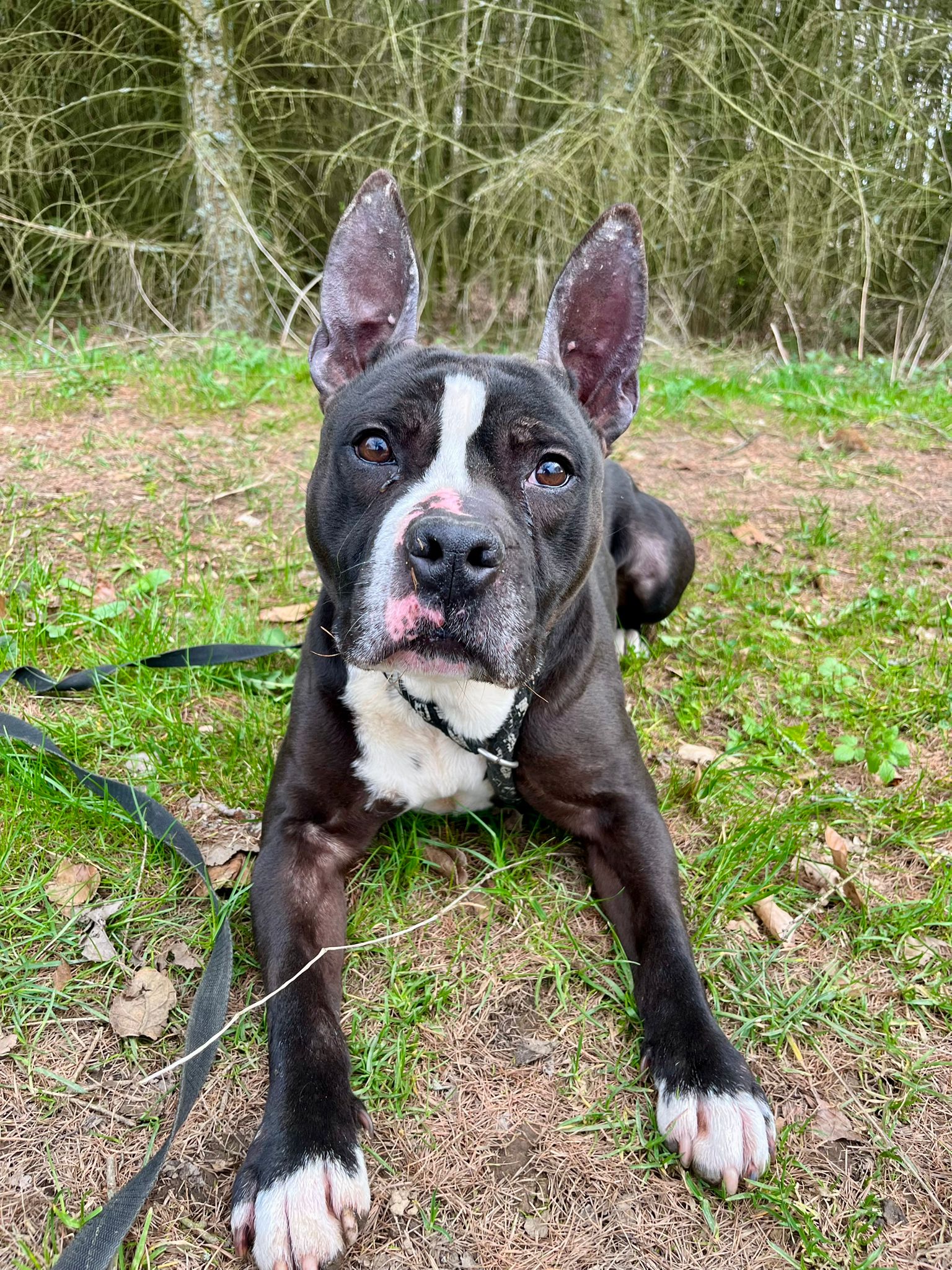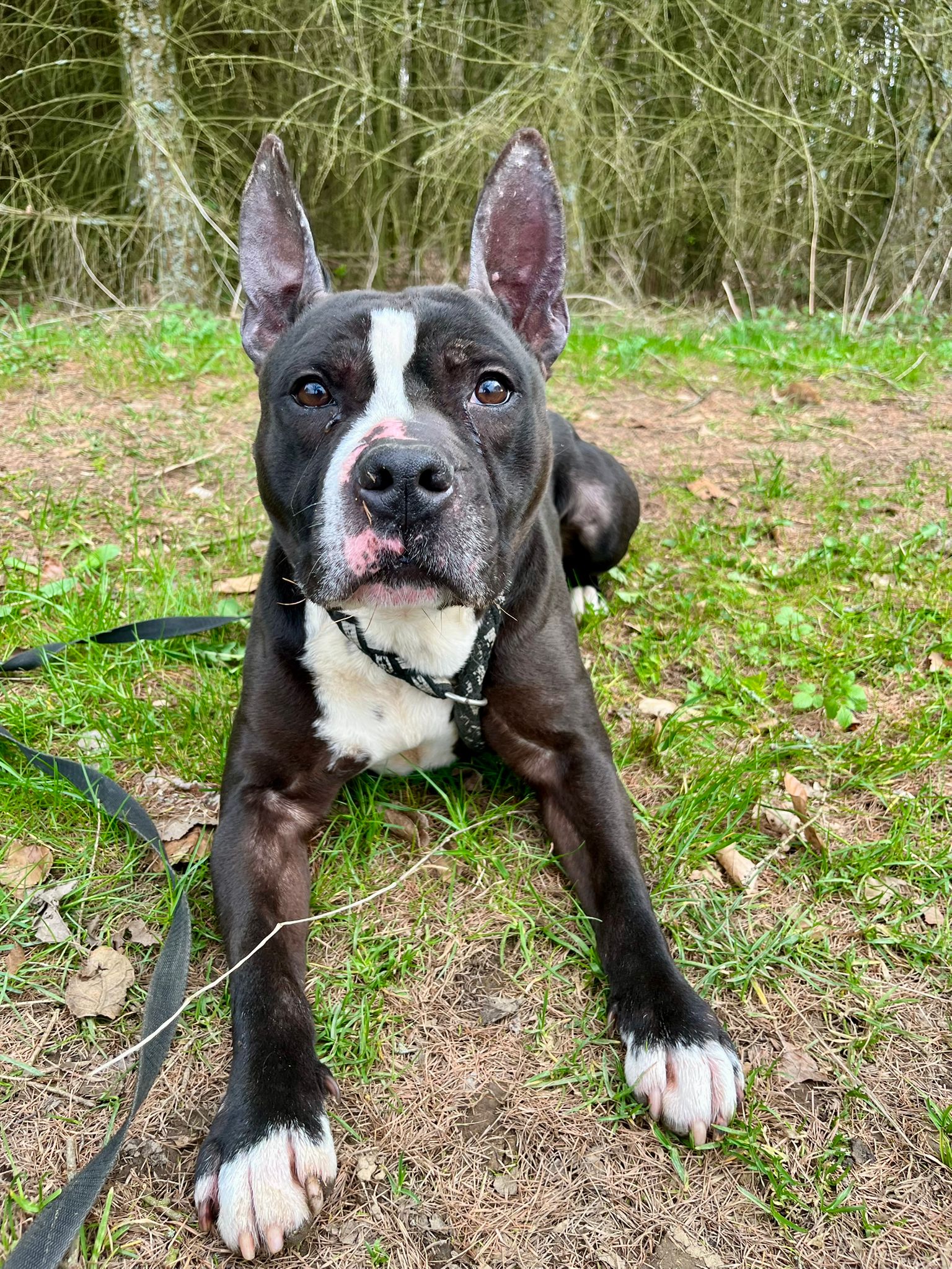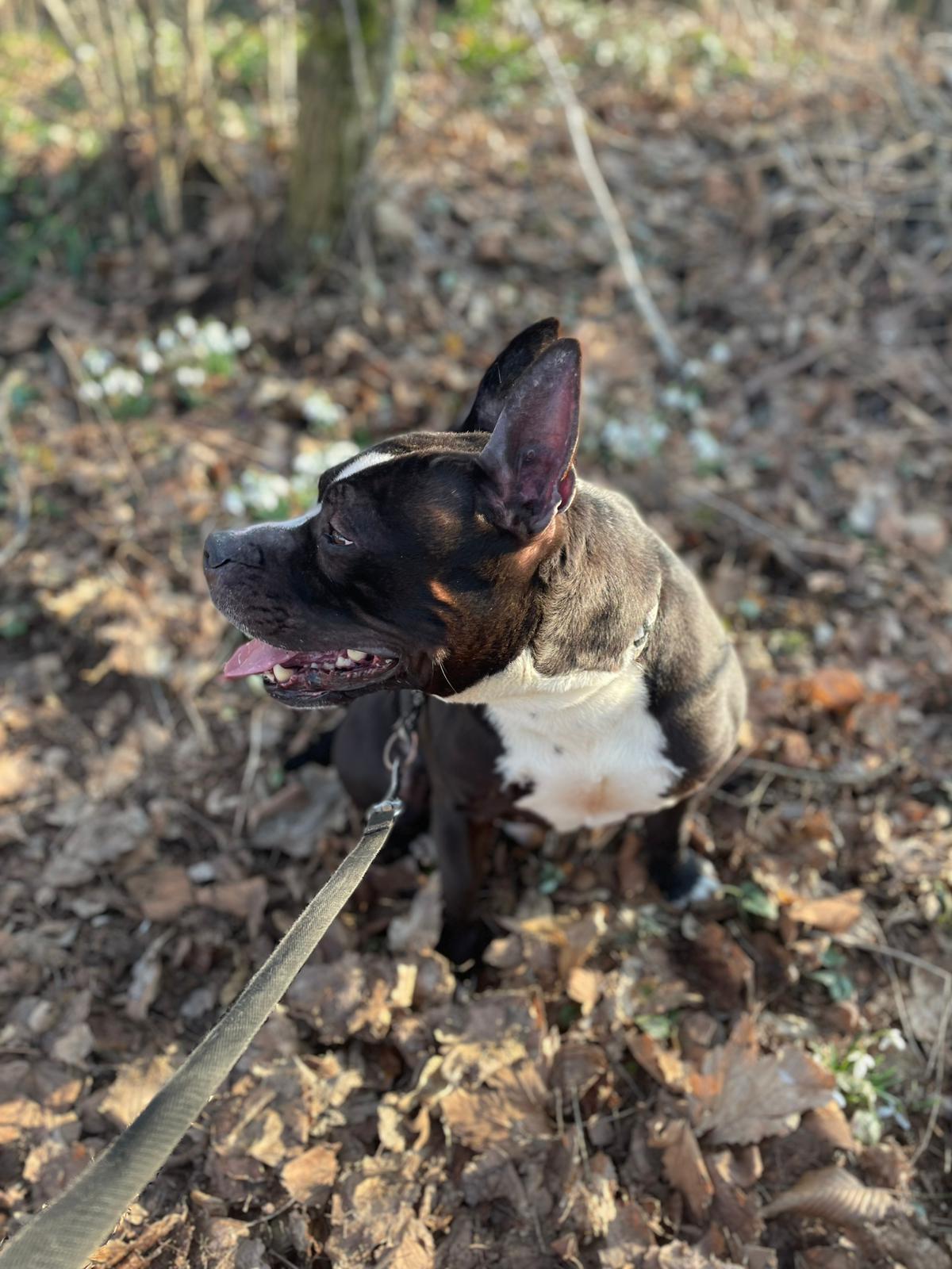 Jay je 6letý kříženec staforda nebo stafbulla. Váží 25 kg. Jay je nadupaný a milující psí kluk – hravý, akční, neúnavný… klidně bude celý den řádit venku. Na vodítku je trochu hrrr, ale v klidném prostředí bez stop zvěře může chodit i na volno. Je zvyklý doma a je velmi čistotný, ale zůstává nerad sám. Zpočátku je opatrný a je třeba mu dát čas na seznámení. Z toho důvodu se nehodí k úplně malým dětem, k větším bez problémů. Se psy se převážně snese dobře, ale trvalé soužití by vyžadovalo ostražitost a zkušenosti.