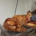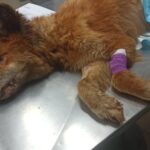 Čtvrtý den však Šotek dostal neurologický záchvat. Veterinář přijel během pár minut, Šotek dostal diazepam a po chvilce ustaly křeče vleže na boku a byl schopen vstát a vrávoravě zaplul do boudy. Protože do večera se nijak výrazně nezlepšil, přesunuli jsme jej domů do tepla. Následující dny Šotek ležel bezvládně na boku, nezvedal ani hlavu. Nezbývalo než mu nasadit kapačky a postupně jsme začali objíždět všemožná vyšetření včetně magnetické rezonance u MVDr. Johanidese. Podle rozboru krví včetně různých doplňkových speciálních parametrů, trusu, výsledků rtg, MR a CT byl Šotek zdravý pes. Ve skutečnosti pouze ležel bezvládně na boku, nepil, nejedl, jen dýchal a měl otevřené oči, které reagovaly omezeně. Pokračovali jsme s infuzemi, dostal celou řadu léků…. Po týdnu se velmi nepatrně zlepšil, začal jíst maso z ruky, ale stále ležel, byť už nepatrně na minichvilku nadzdvihl hlavu. Veterináři několikrát doporučili euthanizii. Nicméně přesto každý den jsem zaznamenala nějaký pokrok….byť nepatrný… vlásek po vlásku se Šotík zlepšoval. Přišly také propady – průjmy, nechutenství, apatie… Po dalších vyšetřeních se konečně podařilo s určitou pravděpodobností stanovit diagnózu – myastenia gravis a zhoršená funkce štítné žlázy. Šotek dostal přesnou medikaci a další týdny a měsíce se zlepšil natolik, že začal opět chodit a být soběstačný. Chůzi mu však ztěžuje silná artróza – Šotkovi doslova vržou kyčle. Jezdíme s ním proto na rehabilitaci. Po nekonečných pokusech s krmivem má barf jídelníček, po kterém nemá průjem a dostal se na původní váhu.