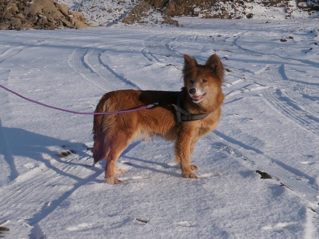 To byl jeho první útěk. Nikdy jsme ho neslyšeli štěkat, ale když se cítil osamocen, táhle vyl…Později jsme jej přesunuli do kotce s přístupem na dvůr. Denně jsme se u něj střídali, nabízeli nejvoňavější laskominy, povídali si s ním…pokroky však byly mizivé. Časem se odvážil na dvůr, kde byli ostatní psi, ale vždy důsledně dodržoval bezpečný odstup od lidí. Ochotně zaplul zpět do svého kotce, když jsme jej potřebovali zavřít. Po roce minimálních úspěchů jsme se rozhodli Šotka přestěhovat do smečky dovnitř do bytu. Začátky byly strašné – Šotek skákal po parapetech a snažil se dostat ven. Poté si našel úkryt pod skříňkou – jíst a pít chodil v noci a vyprazdňovat na gauč, který jsme museli zakrýt igelitem a neustále převlékat. Naštěstí po několika týdnech pochopil, že může se smečkou několikrát denně vyběhnout na dvůr a zase se s ostatními vrátit zpět, což nám velmi ulevilo od neustálého úklidu. Jeho bezpečná osobní zóna už nebyla tak úzkostně široká a dalším, byť možná nepatrným, ale z našeho pohledu velkým pokrokem bylo, že si bral z lidské ruky kus masa. I na letmý dotyk reagoval ohnáním nebo letmým stisknutím.