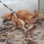 Aktualizace 26. 9. 2024: Šotek byl téměř rok nezvěstný, už jsme ani nedoufali… Jak obrovské bylo překvapení, když k nám dorazila informace, že se Šotek pohybuje v lesích poblíž Hněvkovic, cca 8 km od nás! Po dobu přibližně 2 týdnů jsme desítky hodin číhali v hlášených lokalitách, monitorovali terén, autem, na kole, kam to autem nešlo, dronem, moc nám pomohla také kampaň na Psím detektivu, nakontaktovali jsme spoustu místních lidí… Šotek se postupně posouval terénem v okruhu asi 10 km kolem Humpolce, kde konečně se nakonec díky perfektní spolupráci majitelky maličké farmy přímo v Humpolci zadařilo a Šotek je opět u nás v azylu. Šotek byl kost a kůže pokrytá zchumlanou srstí, plný blech a špíny. První tři dny slupnul vrchovaté misky granulí, pil, vyprazdňoval se, vše v pořádku. Před námi se ukrýval v boudě, ale netlačili jsme na něj a čekali, až se trochu vzpamatuje po tom všem.